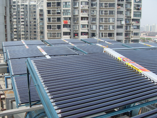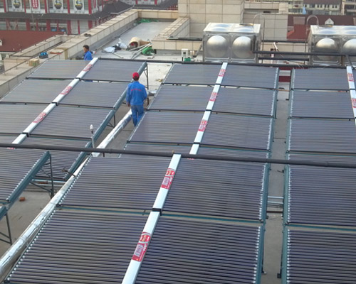5)控制系統 全自動運行,可實現計算機智能化控制,性能可靠,使用方便,具有定溫出水、循環加熱防凍控制功能。可以和任何一種常規能源熱水系統配合,完全實現全日制24小時連續熱水供應的大型集熱式太陽能熱水系統。